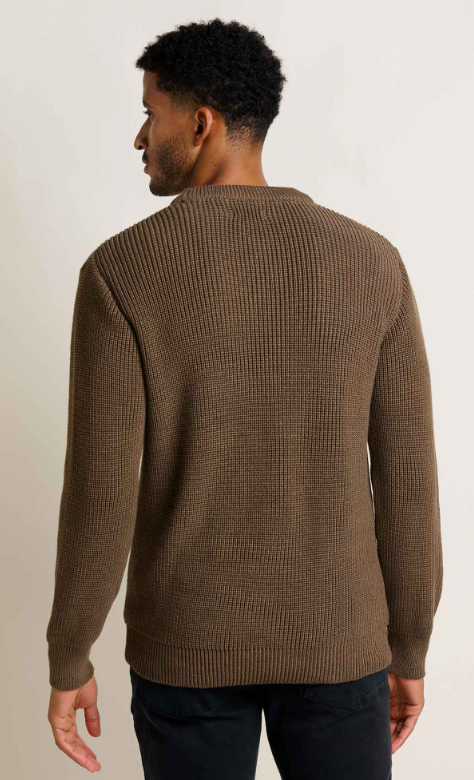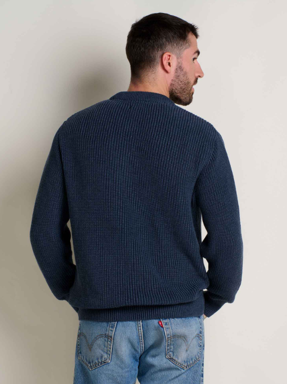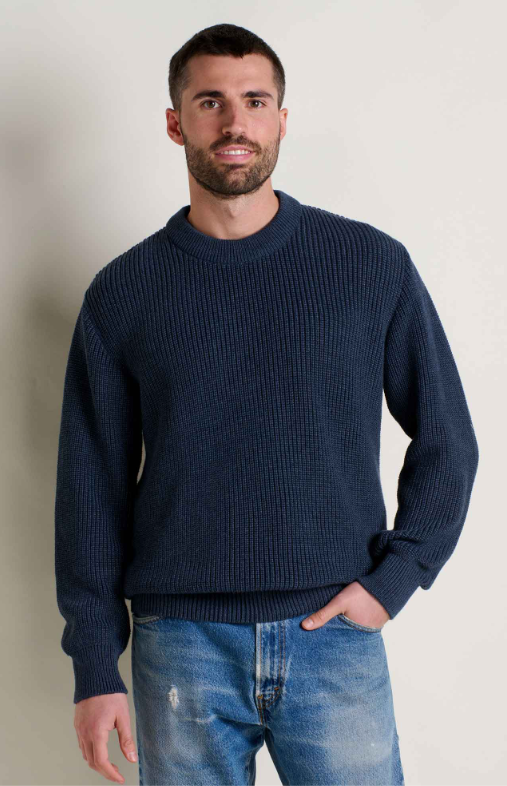 Made from 100% recycled materials, this easy-wearing sweater channels the time-tested quality of your grandpa’s favourite layer but with a softness that inspires cuddling.