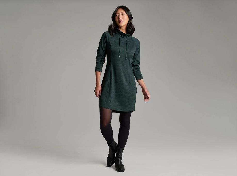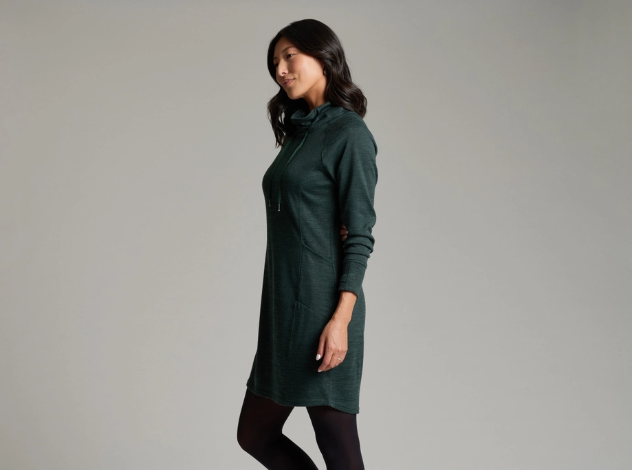 Featuring Kuhl's soft, midweight sweater knit fabric and a cozy cowl neckline, the ELIA™ Dress easily adapts to almost any social gathering. Flattering princess lines combine with signature thumb loops and raglan sleeves for premium comfort and an elevated look. Side stash pockets keep essentials close at hand.